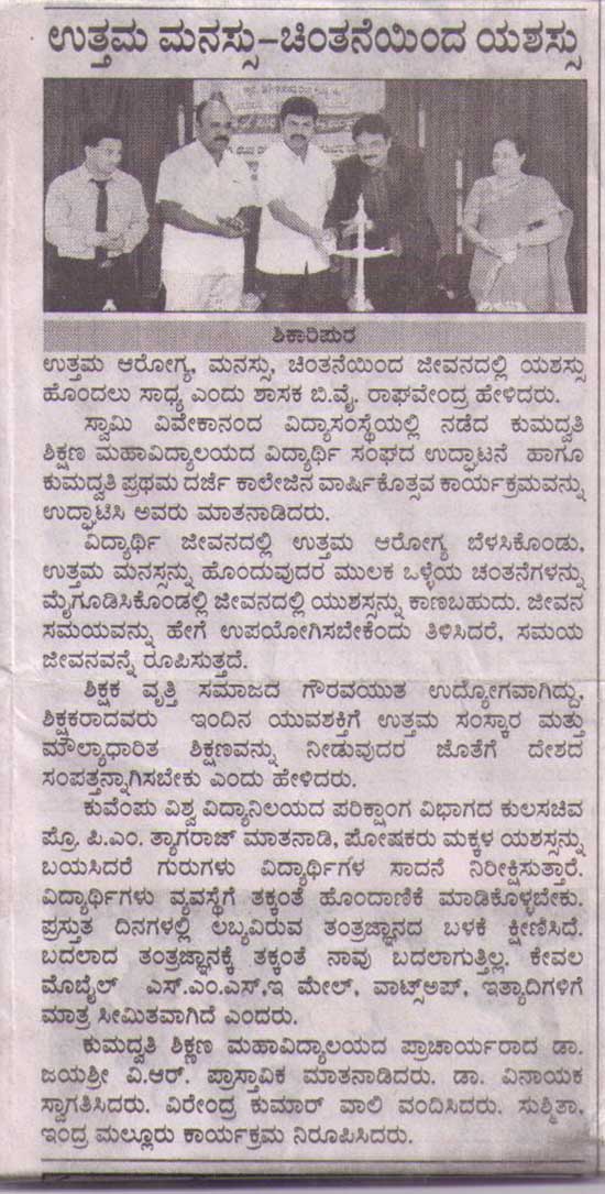 ಕುಮದ್ವತಿ ಪ್ರಥಮ ದರ್ಜೆ ಕಾಲೇಜಿನ ವಾರ್ಷಿಕೊತ್ಸವ ಕಾರ್ಯಕ್ರಮ