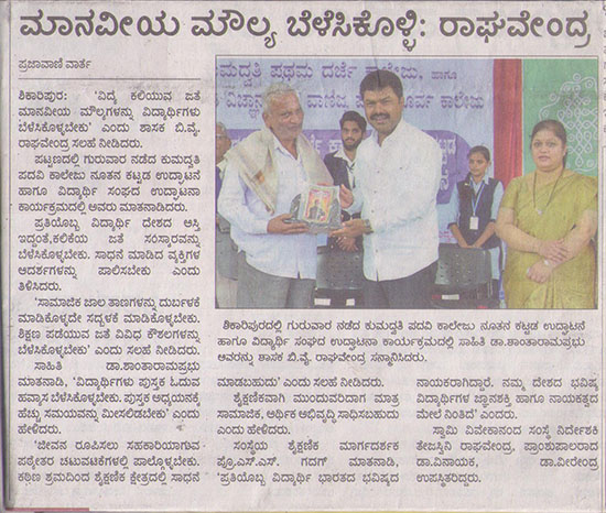 Kumadvathi First Grade College > Media Watch > Building Inauguration function 2017