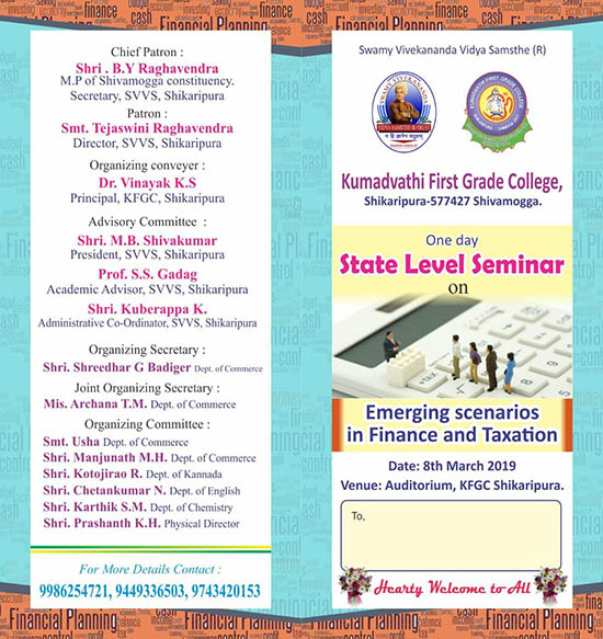 Kumadvathi First Grade College > Latest Updates > State Level Seminar On 8th March 2019