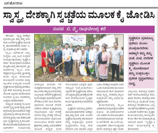 Kumadvathi First Grade College > Media Watch > ಶಿಕಾರಿಪುರದಲ್ಲಿ ‘ಸ್ವಚ್ಚತಾ ಕಿ ಸೇವಾ’ ಕಾರ್ಯಕ್ರಮದಲ್ಲಿ ಸಂಸದ ರಾಘವೇಂದ್ರ