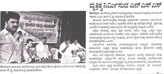 ಶಿಕಾರಿಪುರ ತಾಲ್ಲೂಕು ತಾರೇಗೊಪ್ಪ ಗ್ರಾಮದಲ್ಲಿ ನಡೆಯುತ್ತಿರುವ ಎನ್.ಎಸ್.ಎಸ್. ಶಿಬಿರದಲ್ಲಿ ಶಾಸಕ ಬಿ.ವೈ.ರಾಘವೇಂದ್ರ ಮಾತನಾಡಿದರು.