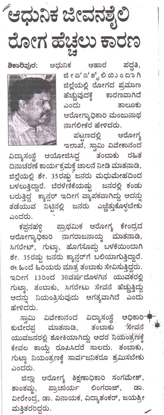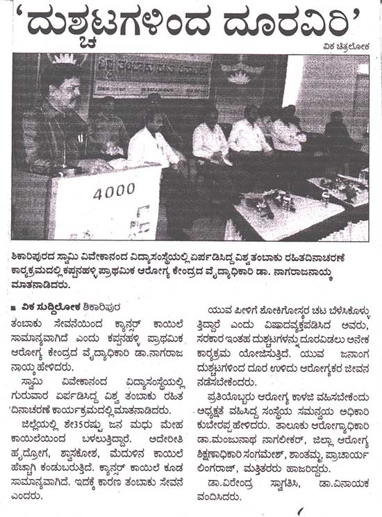 Kumadvathi First Grade College > Media Watch > ವಿಶ್ವ ತಂಬಾಕು ರಹಿತ ದಿನಾಚರಣೆ ಕಾರ್ಯಕ್ರಮ