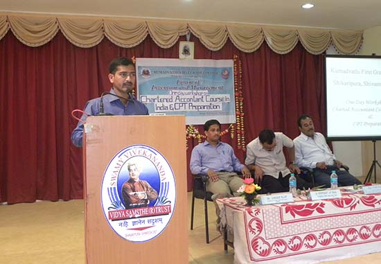ನಂತರ ಮಾತನಾಡಿದ ಶಿಕಾರಿಪುರದ ಸರ್ಕಾರಿ ಪ್ರಥಮ ದರ್ಜೆ ಕಾಲೇಜಿನ ವಾಣಿಜ್ಯ ವಿಭಾಗದ ಮುಖ್ಯಸ್ಥರಾದ ಜಿ, ಆರ್ ಜೋಷಿಯವರು ಮಾತಾನಾಡಿ, “ವಾಣಿಜ್ಯ ವಿಭಾಗದಲ್ಲಿ ವಿದ್ಯಾರ್ಥಿಗಳ ಸಂಖ್ಯೆಯು ಇತ್ತಿಚೆಗೆ ಜಾಸ್ತಿಯಾಗುತ್ತಿದ್ದು ಆದರೆ ಪದವಿ ಪಡೆದ ವಿದ್ಯಾರ್ಥಿಗಳು ಜೀವನ ನಿರ್ಮಾಣ ಮಾಡಿದಕೊಳ್ಳವಲ್ಲಿ ವಿಫಲವಾಗುತ್ತಿರುವುದು ವಿಷಾದನೀಯ, ಇದಕ್ಕೆ ಕೌಶಲ್ಯದ ಕೊರತೆ ಮತ್ತು ಪುಸ್ತಕ ದವಿಷಯಗಳಿಗೂ ಪ್ರಾಯೋಗಿಕ ಪರಿಣಿತಿಯಲ್ಲಿನ ಕೊರತೆಯೆ ಕಾರಣ ಎಂದರು.”