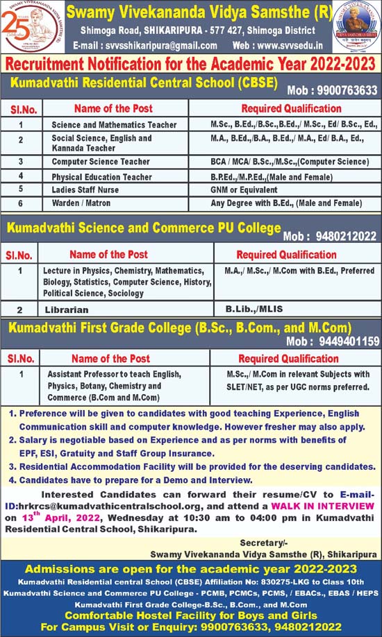 Recruitment notification for the academic year 2022-2023