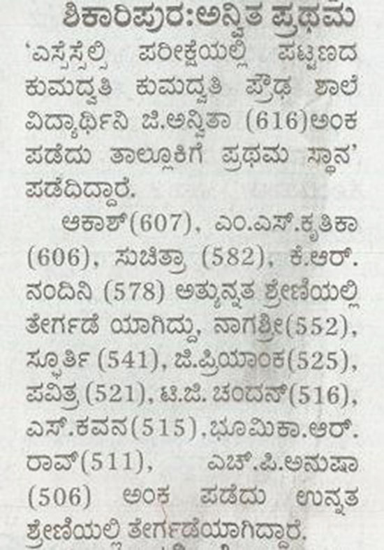 > ಕುಮದ್ವತಿ ಪ್ರೌಢ ಶಾಲೆ ಅನ್ವಿತ ಪ್ರಥಮ