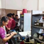 Students of Kumudvati High School visited the Chemistry Lab and are receiving information about the experiments from PU Lecturer Veena H.