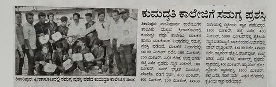 > ಶಿಕಾರಿಪುರ ಕ್ರೀಡಾಕೂಟದಲ್ಲಿ ಸಮಗ್ರ ಪ್ರಶಸ್ತಿ ಪಡೆದ ಕುಮದ್ವತಿ ಕಾಲೇಜಿನ ತಂಡ