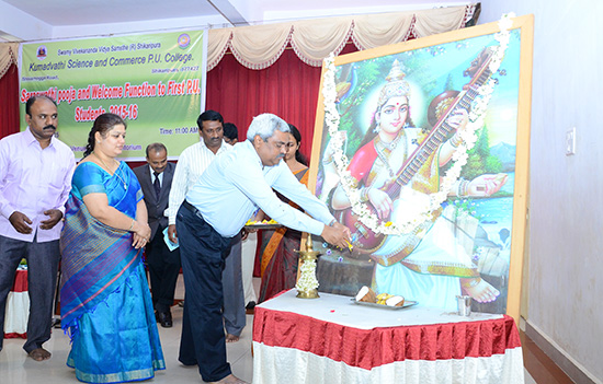 Dr. Shishupal, Dean of Science and Technology, Davanagere University Inaugurating the Occasion of welcome ceremony for first PU entrants.