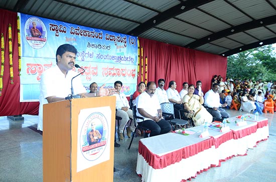 ಸ್ವಾಮಿ ವಿವೇಕಾನಂದ ವಿದ್ಯಾಸಂಸ್ಥೆಯಲ್ಲಿ ನಡೆದ 69 ನೇ ಸ್ವಾತಂತ್ರ್ಯ ದಿನಾಚರಣೆ ಕಾರ್ಯಕ್ರಮದಲ್ಲಿ ಶಿಕಾರಿಪುರ ಕ್ಷೇತ್ರದ ಶಾಸಕರು ಹಾಗೂ ನಮ್ಮ ಸಂಸ್ಥೆಯ ಕಾರ್ಯದರ್ಶಿಗಳಾದ ಶ್ರೀ ಬಿ. ವೈ ರಾಘವೇಂದ್ರರವರು ದ್ವಜಾರೋಹಣ ನಡೆಸಿ, ದೇಶದ ಮಹಾ ಪುರುಷರನ್ನು ಸ್ಮರಿಸುವ ಮೂಲಕ ದಿನಾಚರಣೆಯನ್ನು ಆಚರಿಸಿ ಎಂದು ಹೇಳಿದರು. ವರ್ಷದಲ್ಲಿ ಒಂದು ದಿನ ದೇಶದ ಎಲ್ಲ ಜನ ಒಂದೇ ಸಮಯದಲ್ಲಿ ಸಂತೋಷದಿಂದ ಆಚರಿಸುವ ಈ ಹಬ್ಬದಲ್ಲಿ ನಾವುಗಳು ದೇಶಕ್ಕೋಸ್ಕರ ಸಂಕಲ್ಪ ಮಾಡಬೇಕಾಗಿದೆ. ಸಂಪದ್ಬರಿತವಾದ ನಮ್ಮ ರಾಷ್ಟ್ರ ಬ್ರಿಟೀಷರ ಆಗಮನದಿಂದ ಸಂಪತ್ತು ಕಳೆದುಕೊಳ್ಳುವಂತಾಯಿತು. ಅನೇಕ ಮಹಾನ್ ವ್ಯಕ್ತಿಗಳ ತ್ಯಾಗ ಬಲಿದಾನದಿಂದಾಗಿ ಸ್ವಾತಂತ್ರ್ಯ ಪಡೆದ ನಮ್ಮ ದೇಶ ಇಂದು ಉಗ್ರಗಾಮಿ, ಬ್ರಷ್ಠಾಚಾರ, ಇತ್ಯಾದಿಯಿಂದಾಗಿ ಅಭಿವೃದ್ದಿ ಹೊಂದುವಲ್ಲಿ ಕುಂಟಿತವಾಗುತ್ತಿದೆ ಇದನ್ನು ಮನಗಂಡು ಪ್ರತಿಯೊಬ್ಬರು ದೇಶಕ್ಕಾಗಿ ಎನನ್ನಾದರು ಕೊಡುಗೆ ನೀಡಬೇಕು ಎಂದು ಹೇಳಿದರು.