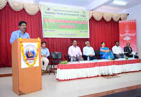 Dr. Veerendra M, principal KSCPUC Shikaripura, addressing the students on the occasion of wellcome function