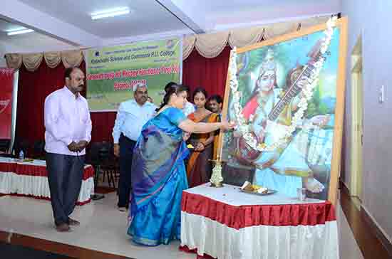 Smt. Tejaswini Raghavendra, director,SVVS, Shikaripura. Doing saraswathi pooja on the occasion of welcome function.