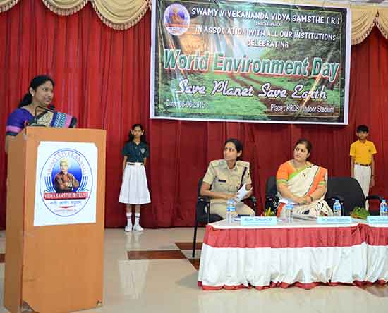 ಸ್ವಾಮಿ ವಿವೇಕಾನಂದ ವಿದ್ಯಾಸಂಸ್ಥೆಯಲ್ಲಿ ನಡೆದ ವಿಶ್ವ ಪರಿಸರ ದಿನಾಚರಣೆಯ ಕಾರ್ಯಕ್ರಮದಲ್ಲಿ ಜಿಲ್ಲಾ ಮುಖ್ಯ ಅರಣ್ಯಾಧಿಕಾರಿ ಶ್ರೀಮತಿ ಸ್ಮಿತಾ ಬಿಜ್ಜೂರು, ಡಿವೈಎಸ್ಪಿ ಕುಮಾರಿ ಶೃತಿ, ಹಾಗೂ ಸಂಸ್ಥೆಯ ನಿರ್ದೇಶಕಿ ಶ್ರೀಮತಿ ತೇಜಸ್ವಿನಿ ರಾಘವೇಂದ್ರ, ಸಂಸ್ಥೆಯ ಮುಖ್ಯಸ್ಥರಾದ ಕುಬೇರಪ್ಪ, ಇವರು ತಮಗೆ ಇರುವ ಪರಿಸರದ ಮೇಲಿನ ಅಭಿಪ್ರಾಯವನ್ನು ವ್ಯಕ್ತಪಡಿಸಿದರು. ವಿವಿಧ ವಿಭಾಗದ ಪ್ರಾಚಾರ್ಯರಾದ ಲಿಂಗರಾಜು, ಡಾ. ಜಯಶ್ರೀ, ಡಾ. ವಿರೇಂದ್ರ, ಡಾ. ವಿನಾಯಕ ಕೂಡ ಉಪಸ್ಥಿತರಿದ್ದರು.