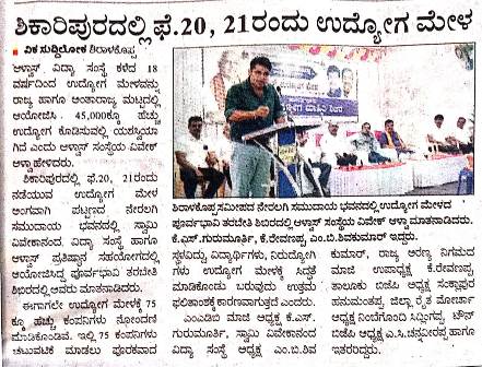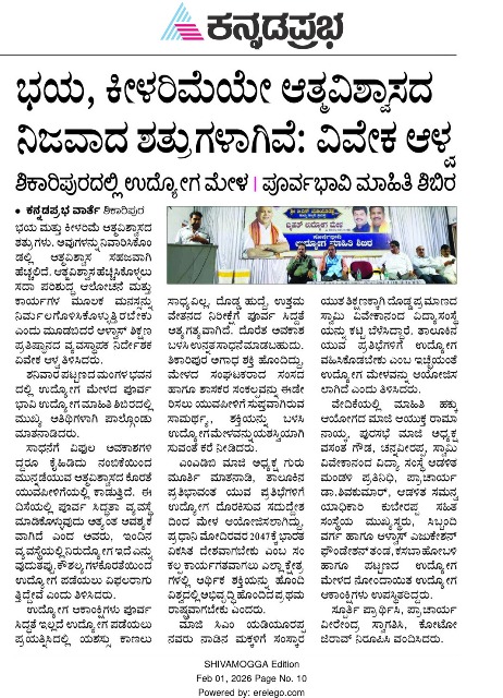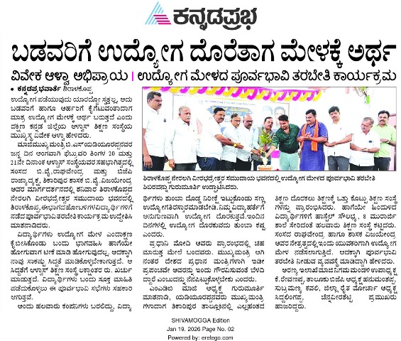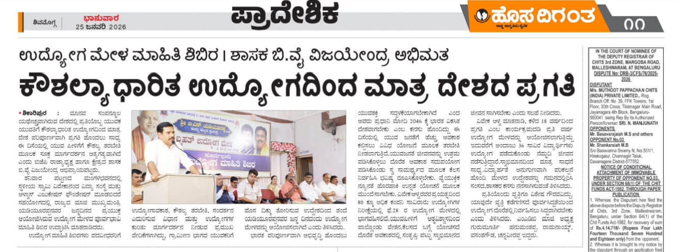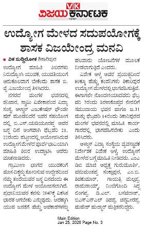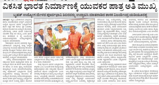 ಗ್ರಾಮೀಣ ಯುವಕರಿಗೆ ಹೊಸ ದಿಕ್ಕ್ಕನ್ನು ತೋರಿಸುವ ಉದ್ದೇಶದಿಂದ ಉದ್ಯೋಗ ಮೇಳ : ಬಿ ವೈ ವಿಜಯೇಂದ್ರ