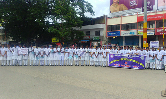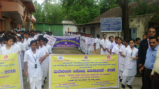 On behalf of Malaria Prevention Awareness Rally was organized by District Health Office Shimoga. 100 Students of Mythri College of Nursing actively participated in Rally which started at 9.30 from District Health Office to IMA hall.